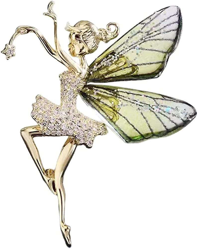 Flying Angel Wings Rhinestone Brooch Pins For Women Girls Ballet Girls Fairy Sticks Angel Wings Zirconia Brooch Elegant Wedding Bouquet Prom Jewelry G