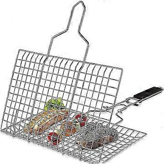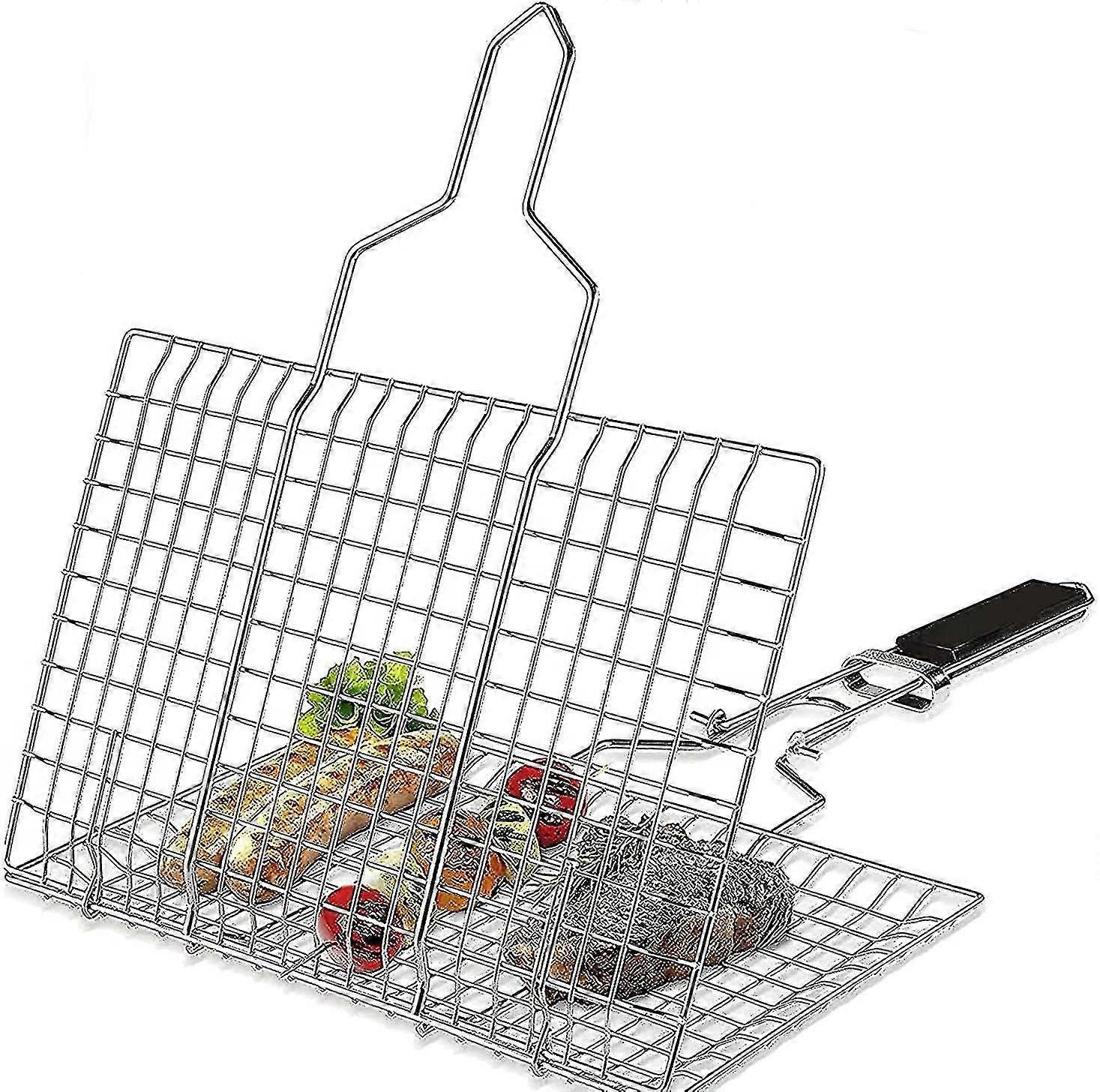 Tragbarer Grillkorb, Tragbarer Bbq-grillkorb, Fr Fisch, Gemse, Steak, Garnelen, Wrstchen Mit Abnehmbarem Griff Und Einfacher Tragetasche, Silberfarben