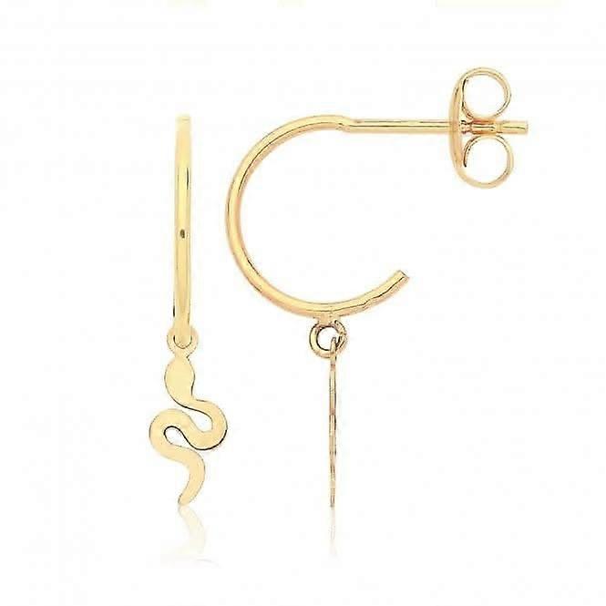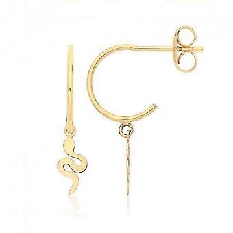 9ct Yellow Gold Half Hoop Studs With Hanging Snake ES752