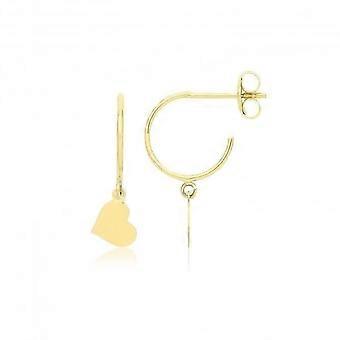 9ct Yellow Gold Half Hoop Studs With Hanging Heart ES750