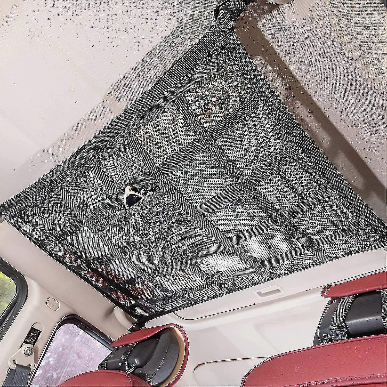 Upgrade Car Ceiling Cargo Mesh Bag, 80x55cm Reinforced Load Bearing And No Sagging Double Layer Mesh Car Roof Storage Rack, Truck Suv Travel Long Trav