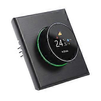 [WiFi Smart Thermostat]Ultra-thin wall-mounted body and buttons design, easy to install and simple to use. Compatible with 86 x 86mm square or European 60mm round installation box. With TFT screen to show information of weather, outdoor humidity, temperature, clock, etc., and 3 colors ambient light increase color to your life. [Smartphone APP Remote Control]Remotely control your home temperature to attain advanced comfort via smartphone APP() , and you can remotely adjust the temperature or lock the thermostat anytime anywhere, no matter you are , in your office or home. [Smart Voice Control]Compatible with for Home or for . With this smart thermostat, you can set the most comfortable temperature for your house by giving a voice to the smart , Which helps a lot when your hands are busy. [Manual Mode and Programming Mode]The smart thermostat for home supports manual mode and programming mode. You can set week program on mobile APP easily. A separate schedule can be set for weekdays(Monday to Friday) and for weekends(Saturday or Sunday), very user-friendly. [Family Sharing]Device share to your family members to control your house temperature via smartphone APP together. All can enjoy the advanced comfort of the temperature. APP: Power Supply: AC90-240V 50-60Hz or 24V DC or AC 50-60Hz Sensor: NTC3950, 10K Accuracy: 1 Set Temp. Range: 5-35 Room Temp. Range: 5-99 Display Temp. Range: 5-99 Ambient Temp.: 0-45 Ambient Humidity: 5-95percent RH(Non Condensing) Storage Temp.:-10 to 45 Power Consumption: Less than1.5W Installation Box: 86 x 86mm Square or European 60mm Round Box Color: Black Material: ABS Package Contents: 1 x Smart Thermostat Temperature Controller Only the above package content, other products are not included. Note: Light reflection and different displays may cause the color of the item in the picture a little different from the real thing. The measurement allowed error is 1-3cm.