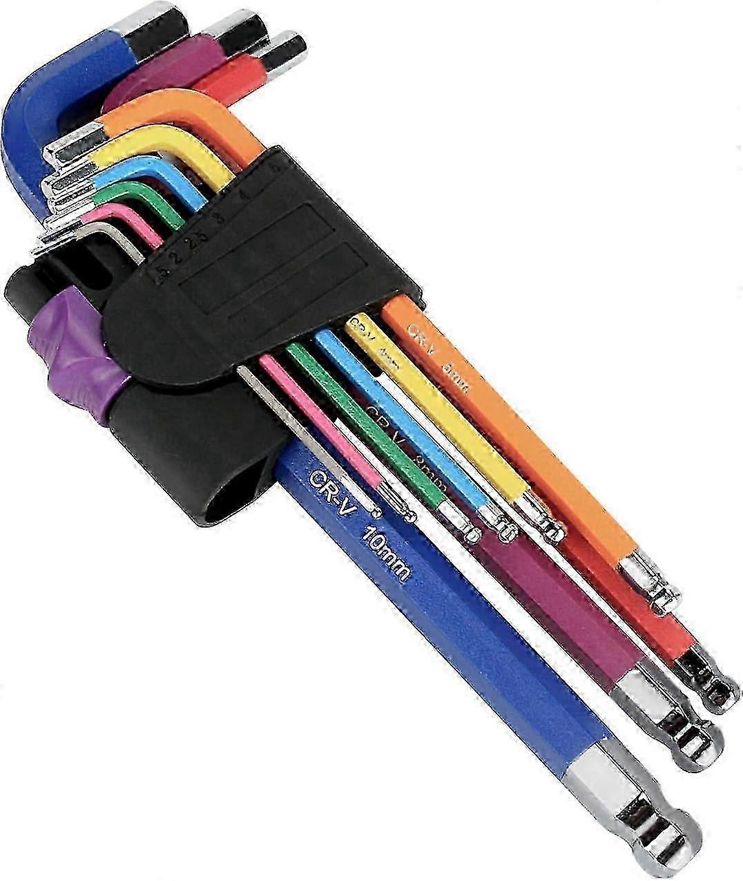 Distinctive Color Coding, Metric Allen Key Set With Anti-Slip Long Ball End For Easy Access, Heavy-Duty Long And Short Arm Hex Wrenches Ideal For