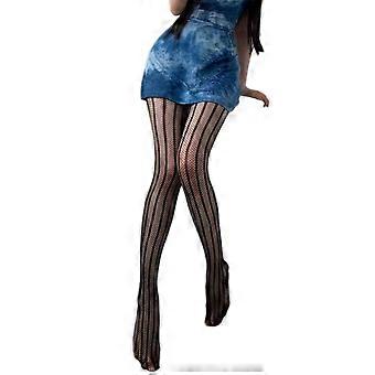 Women See Through Mesh Net Pantyhose Vertical Striped Jacquard Leggings Hosiery