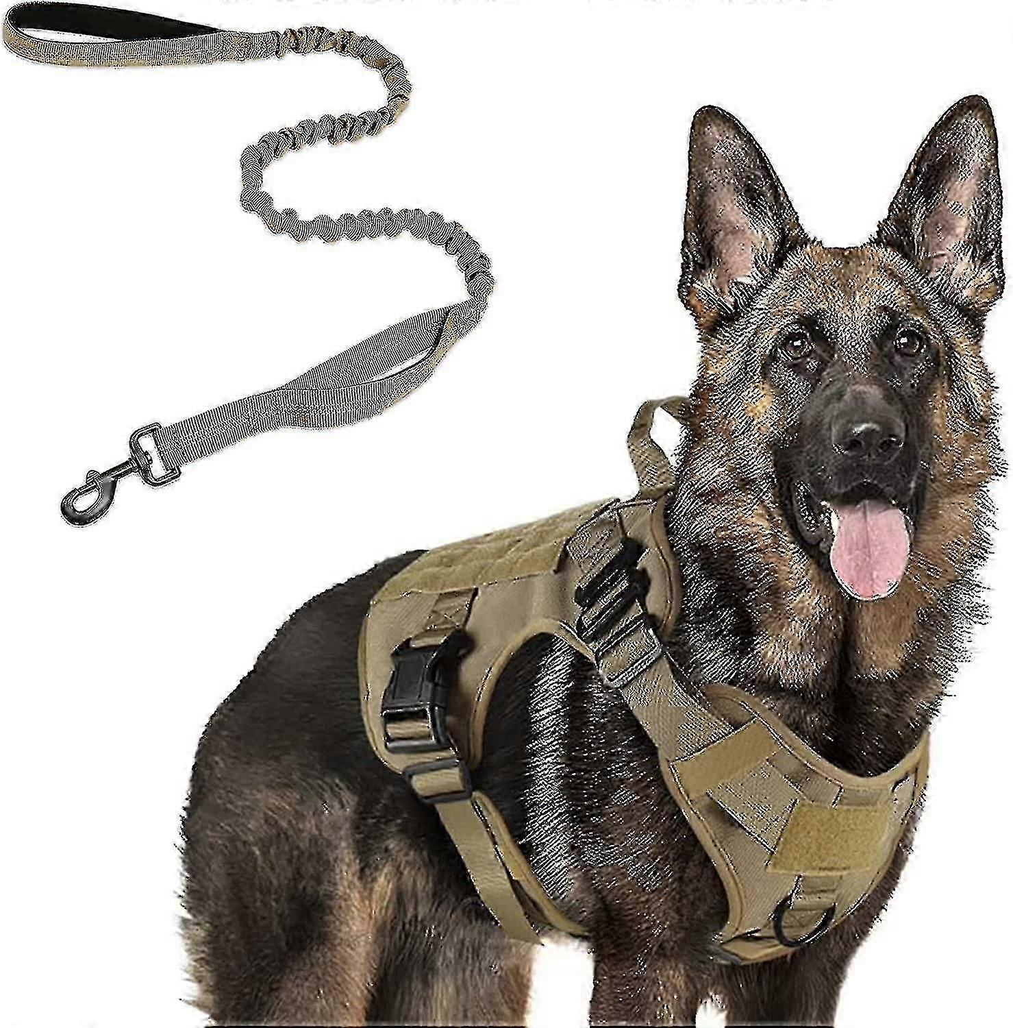 Tactical Dog Harness And 5.2ft Bungee Leash, Military Dog Harness Set For Large Medium Dogs, Hunting, Training - - XiXi