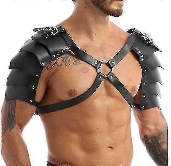 Harness Mens Steampunk Gothic Pu Leather Double Shoulder Armors Buckles Body Chest Harness Belt For Party Cosplay Halloween