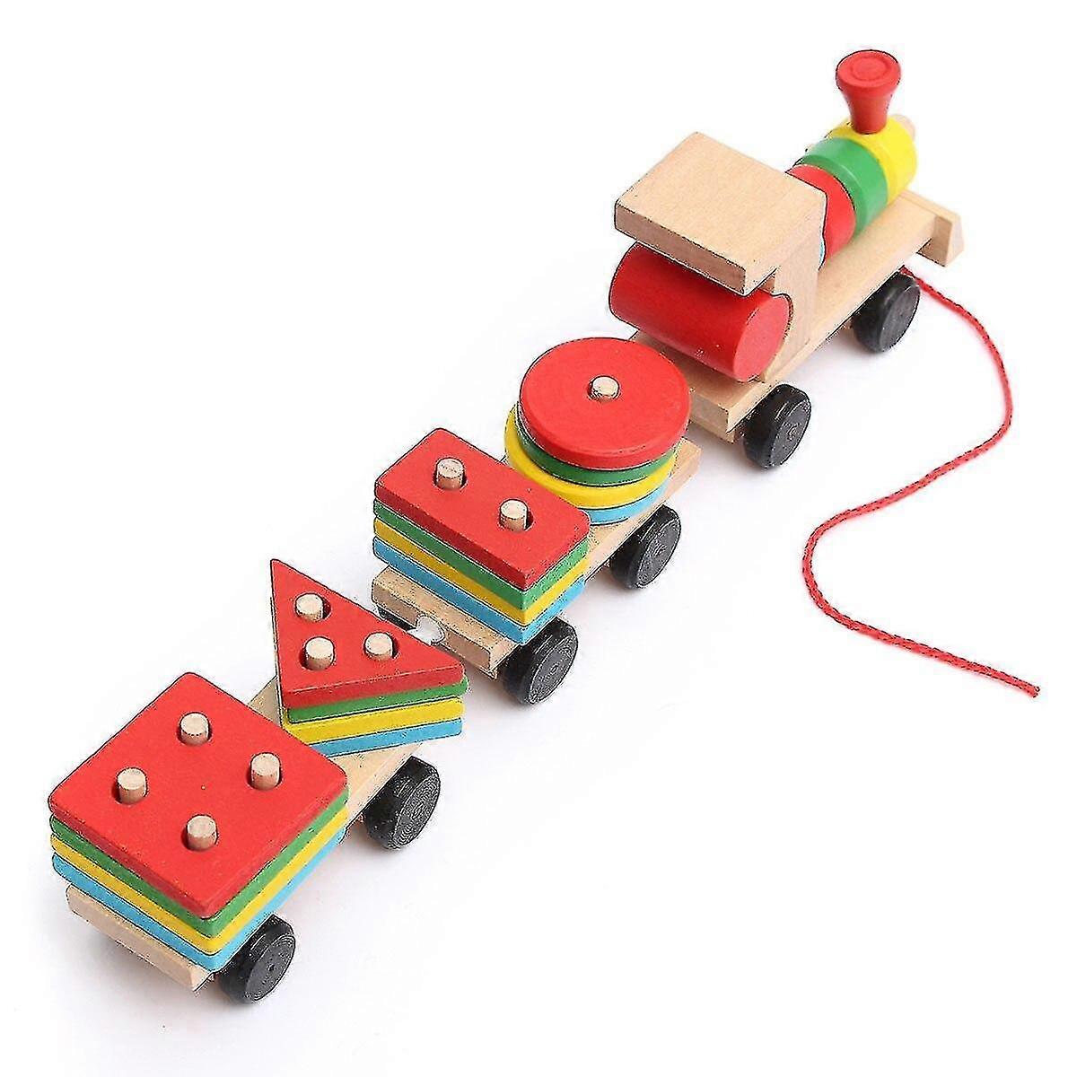 describe: Wooden solid stacking train toddler building block toy fun car board game educational toy childrens birthday gift | model building tool set Wooden puzzle train toy geometric building blocks educational gift feature: The toy has a beautiful design and bright colors and children will love it. It promotes the development of curiosity and motivation for learning. describe: Material: wood Color: as shown Weight: 130 Size: 28*9*6cm Package Included: 1 x wooden train blocks Notice: 1. Due to the difference in light and screen the color of the product may be slightly different from the picture. Please understand that. Please make sure you don't mind before bidding. 2. Due to manual measurement please allow a difference of 1-2cm.