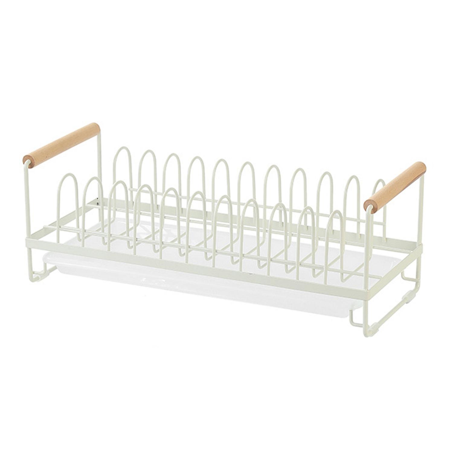 Draining Dish Rack Wooden Handle with Silicone Pad Vertical Countertop Dish Organizer