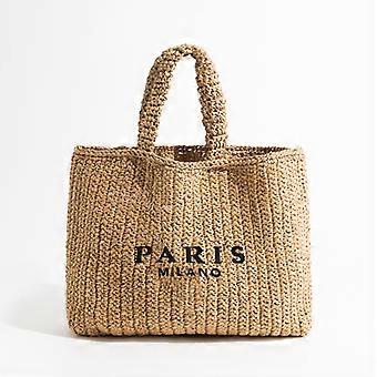 Design Women Plaited Raffia Straw Bag Large Capacity Casual Tote Handbag Hollow Summer Beach Vacation Shoulder Bag