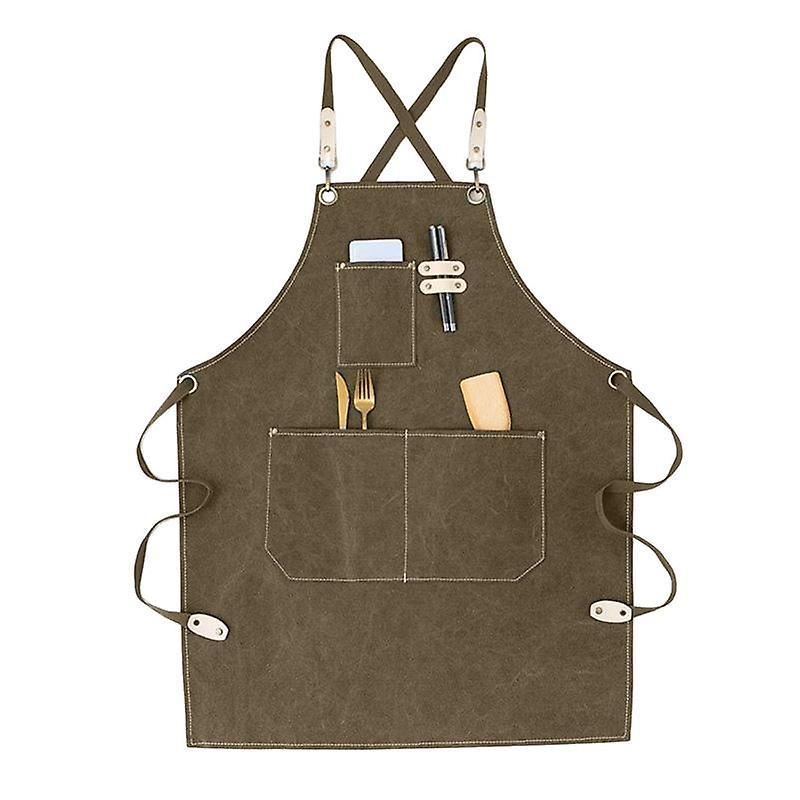 Work Apron Pocket Design Comfortable Wearing Faux Leather Shoulder Strap Good Air Permeability Class