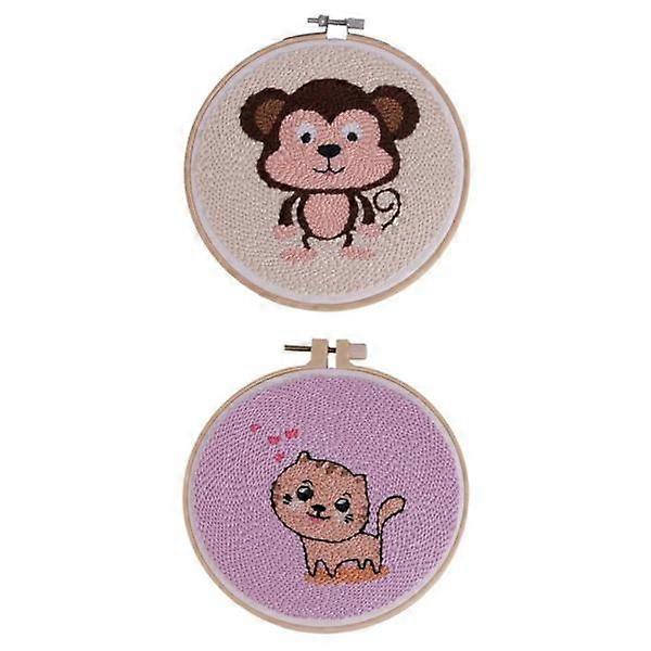 Set monkeys cat punch needle kit with punch embroidery pen DIY crafts