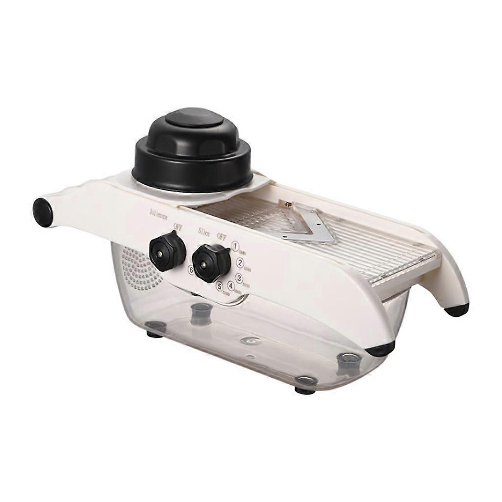 ["brand new and high quality\nFeatures:\nIf you want to slice and julienne by hand, easily switch the blades just by rotating the knobs.\nThe food slicer with 6 size adjustment display, and build in rotating adjustable blades, you can get perfectly flat slices and julienne.\nIt is easy to change between slicers and shred.You will save a lot of for time and effort.\nWhen using the microtome, the safety pusher protects your hands from damage.\nThe non-slip handle and feet fit perfectly on a smooth surface to avoid any damage during operation and make your cooking safer.\nThe folding handle and non-slip feet of the vegetable slicer make it comfortable to use and easy to fold and store. \nThe blade does not require for extra space for storage and is super easy to clean under running water.\n\nSpecification:\nItem Name: Adjustable Vegetable Cutter\nMaterial: ABS+420 Stainless Steel Blade\nColor: As picture shown\nSize:app. 35 x 11 x 12.5cm / 13.77 x 4.33 x 4.92in\nQuantity: 1set\n\nNote:\nTransition: 1cm=10mm=0.39inch\nNo retail package.\nPlease allow 1-2cm error due to manual measurement. pls make sure you do not mind before you bid.\nDue to the difference between different monitors, the picture may not reflect the actual color of the item. Thank you!\n\nPackage includes:\n1 x Vegetable Slicer\n1 x Safety Pusher(other accessories demo in the picture is not included.)"]
