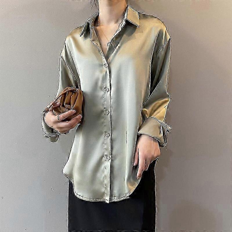 Imitation Silk Satin Shirt Light Mature 2024 Loose Ol Cold Style Shirt
