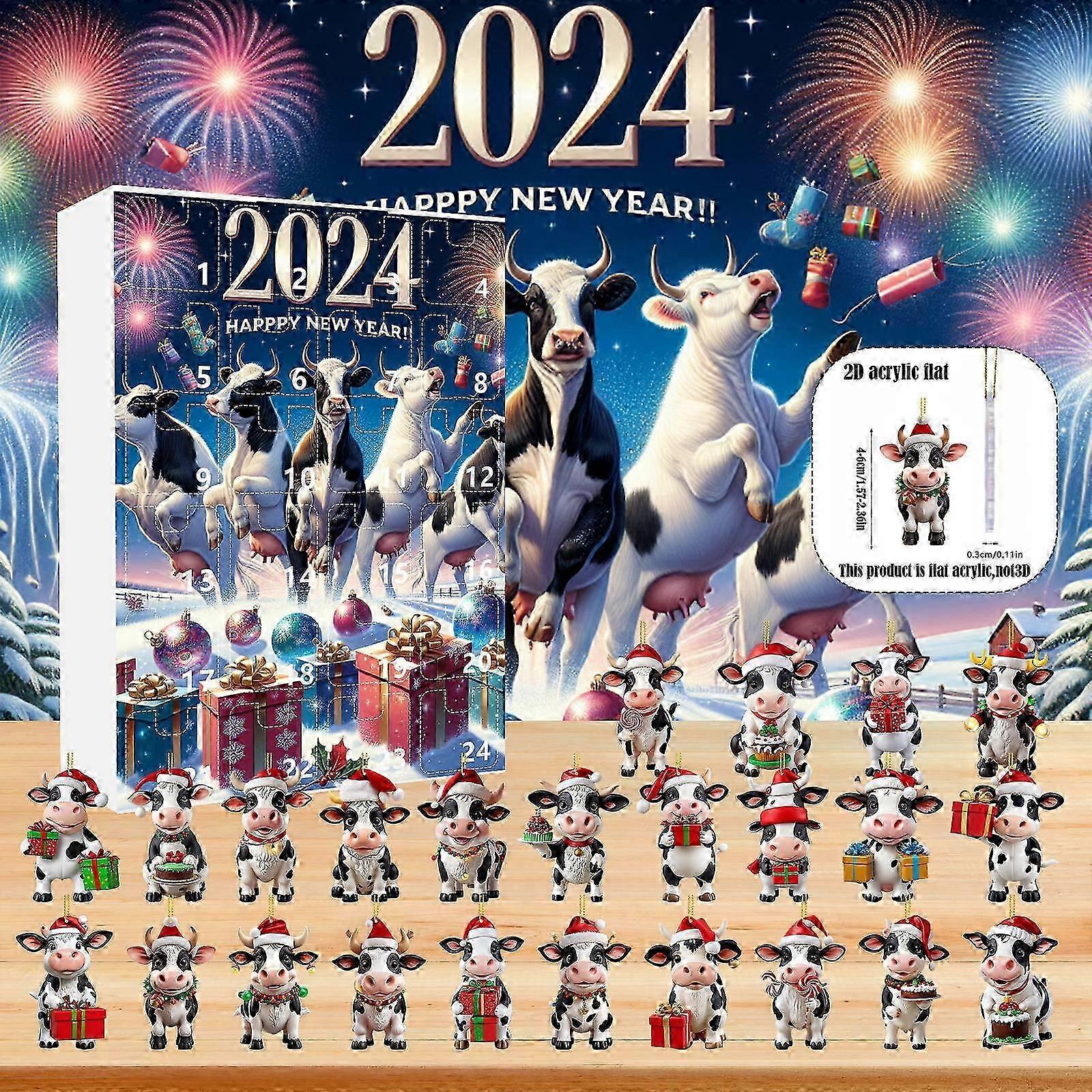 Advent Calendar 2024 Kids 2024 Advent Countdown Calendar 24 Day Christmas Advent Calendar Cute Cow Christmas Ornaments Pendant Christmas Cow Figures