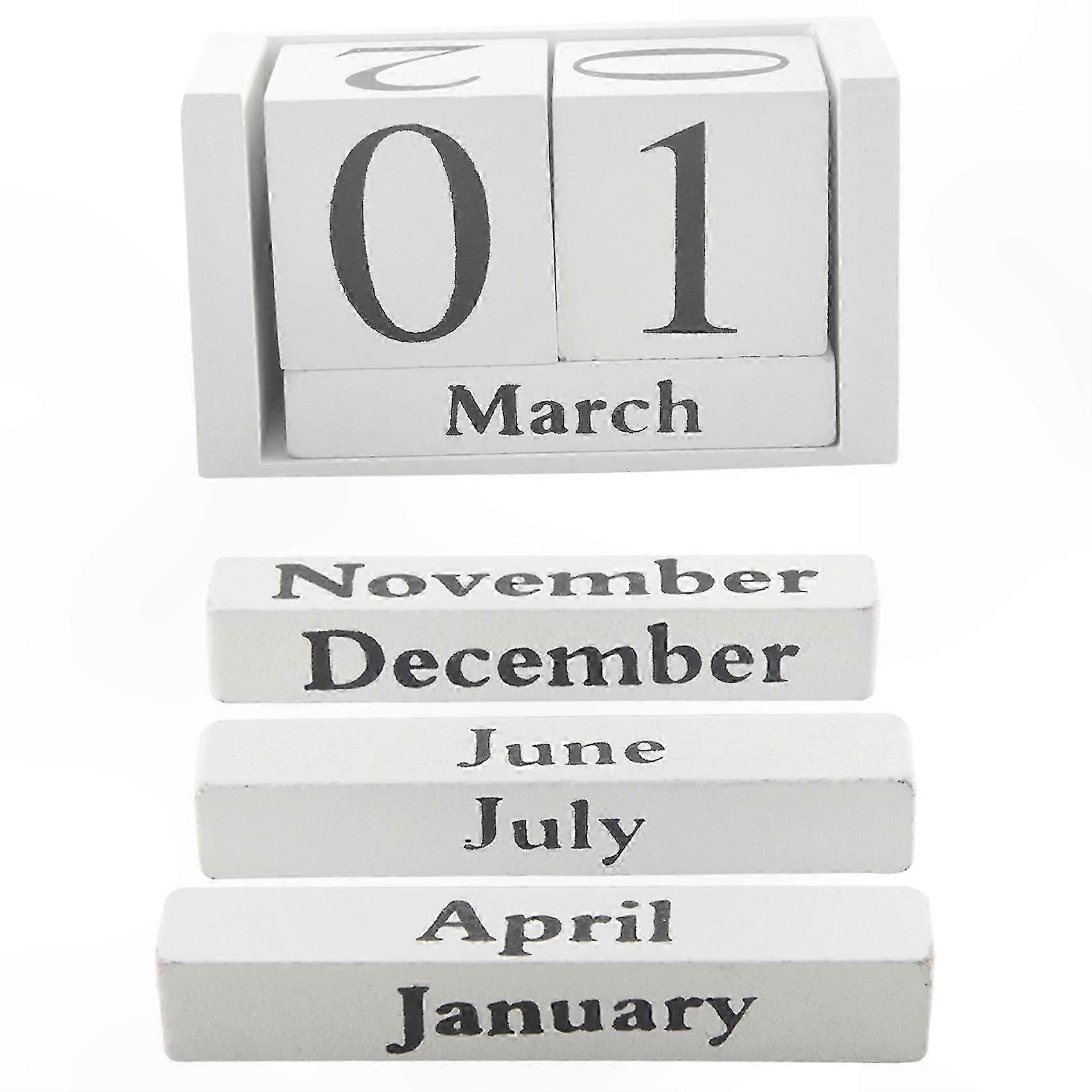 Wooden Perpetual Calendar - Vintage Desktop Decor, Rustic Office Decoration with Revolving Date Blocks