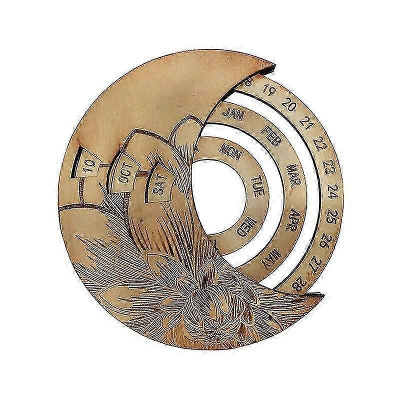 Round Wooden Perpetual Calendar - Rotating Wall Calendar & Desk Ornament for Study, Craft Decoration - Random Color, 1 Piece