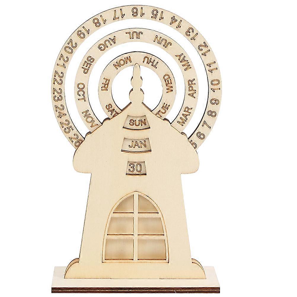 Wooden Perpetual Calendar Made of Boxwood for Home Use Light Yellow and Stylish Desk Accessory 3.15 Inches