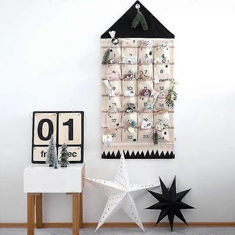 Christmas Advent Calendar With Pockets Wall Hanging Bag For Home Xmas Countdown Decoration 24 Bags (black)