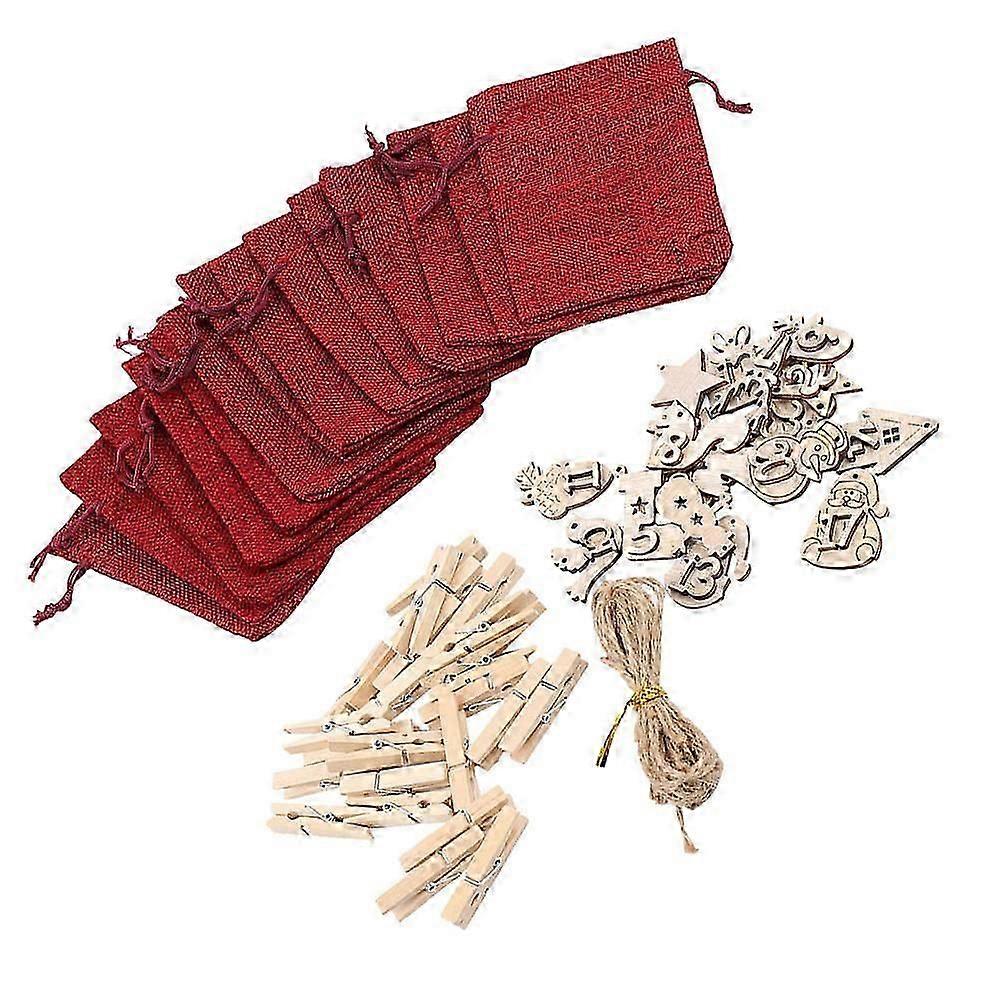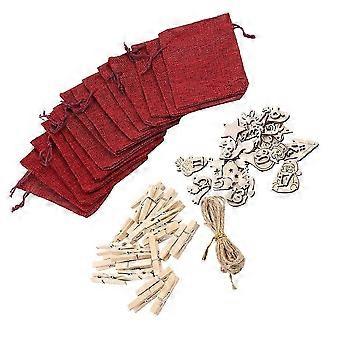 Christmas Calendar Hanging Bags Burlap and Wood for Storage 2Sets