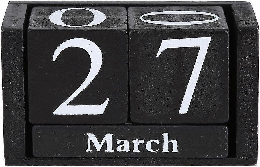 Wooden Desk Calendar, Vintage Perpetual Desk Calendar, Wooden Block Month Date Display for Home Offi