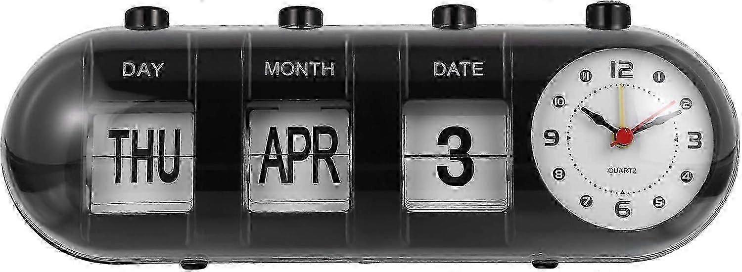 Perpetual Desk Calendar with Clock, ABS Manual Flip Standing Academic Desktop Calendar, Vintage Digital Clock for Home Office Desk Decor