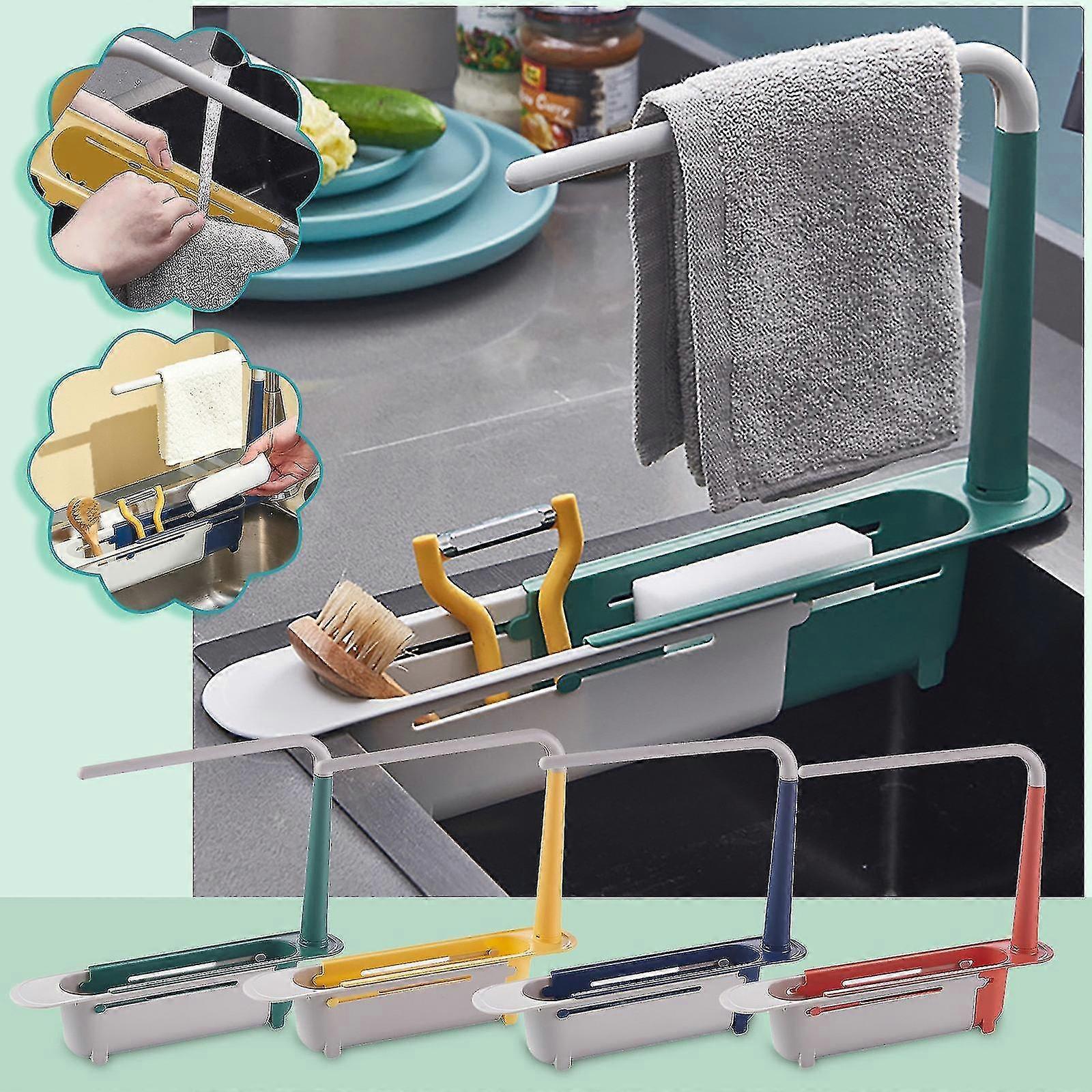Telescopic Sink Shelf Kitchen Sinks Organizer Soap Towel Sponge Holder Drain Rack Storage Basket Gadgets Accessories