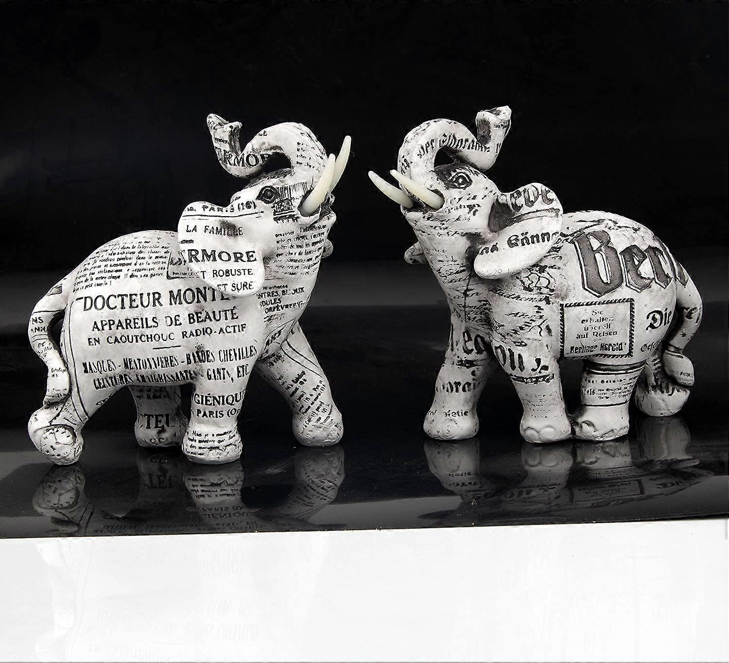 Black and White Elephant Statue Collectible Figurines with Trunk Up Wealth Lucky Elephant Figurine,Perfect for Home Decor Gift