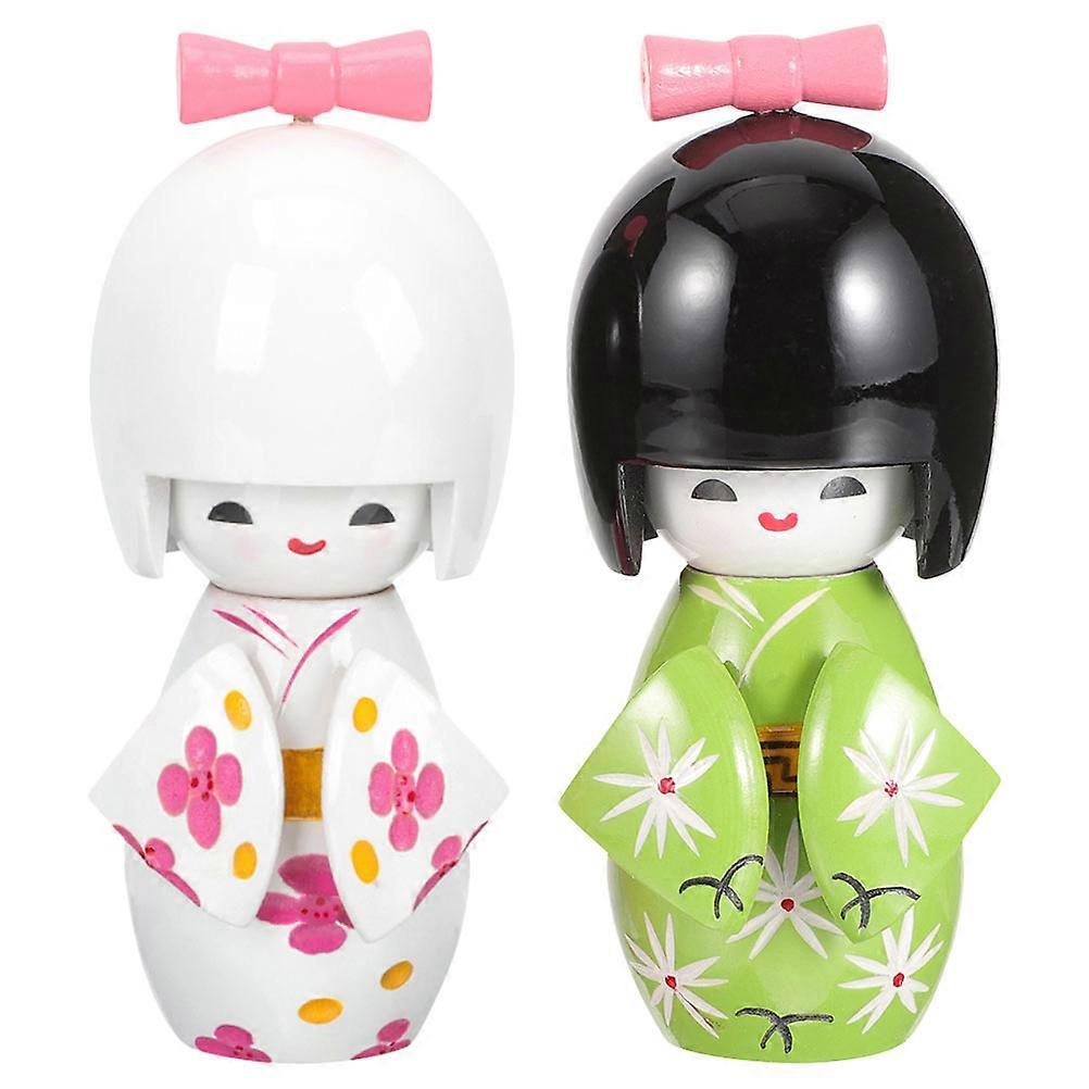 Japanese Kimono Doll Figurines 2pcs Wooden Tabletop Ornaments for Home & Restaurant Decor Unique Japanese Style Design for Artistic Living Room