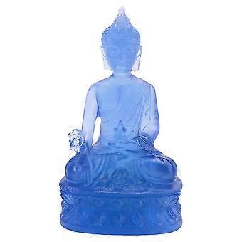 Tibetan Medicine Buddha Statue,Translucent Resin Buddha Sculpture Meditation Decor Spiritual Decor Collectible -Blue js