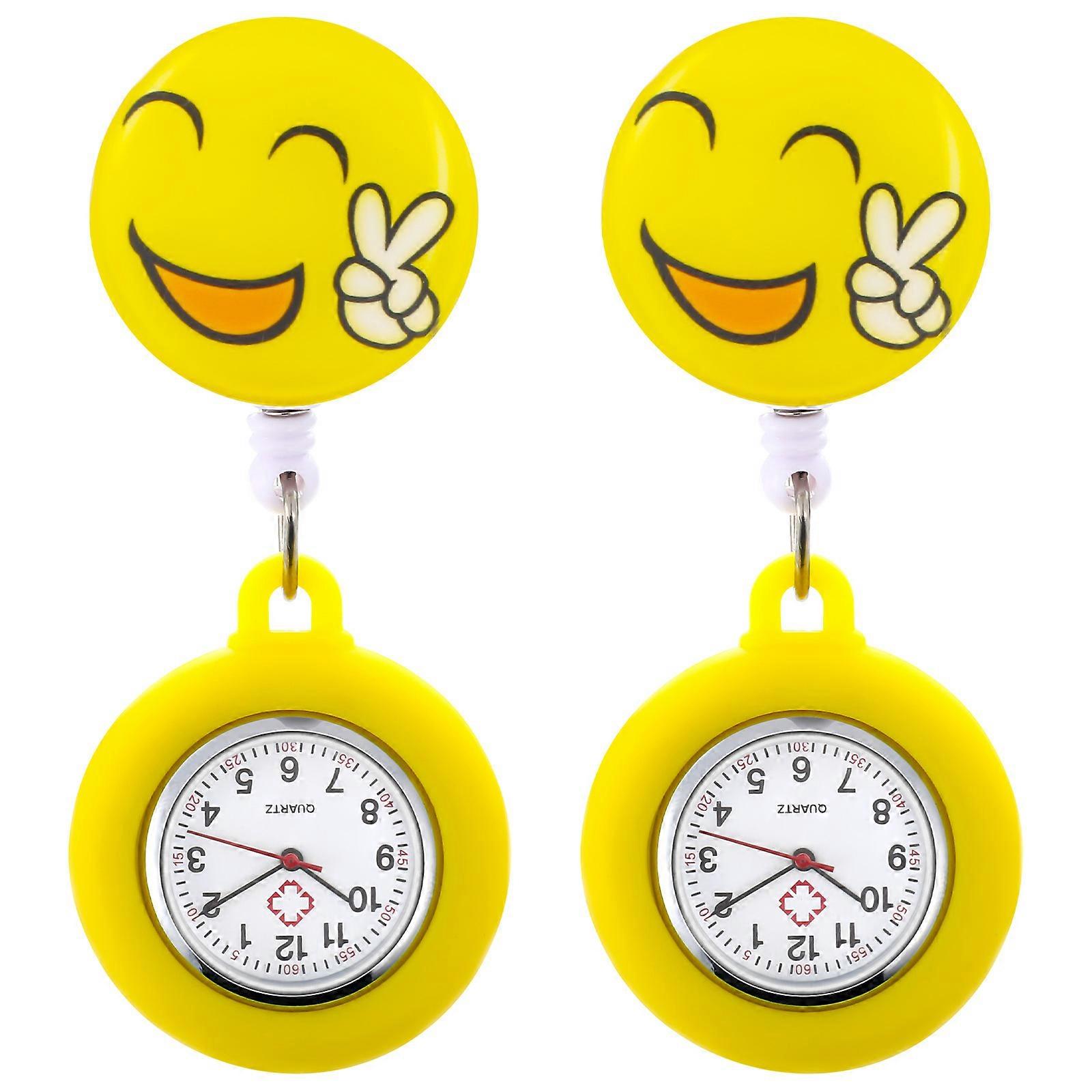 Nursing Pocket Watch 2Set Yellow Cartoon Design For Nurses Practical Clip Watch Suitable For Daily Use