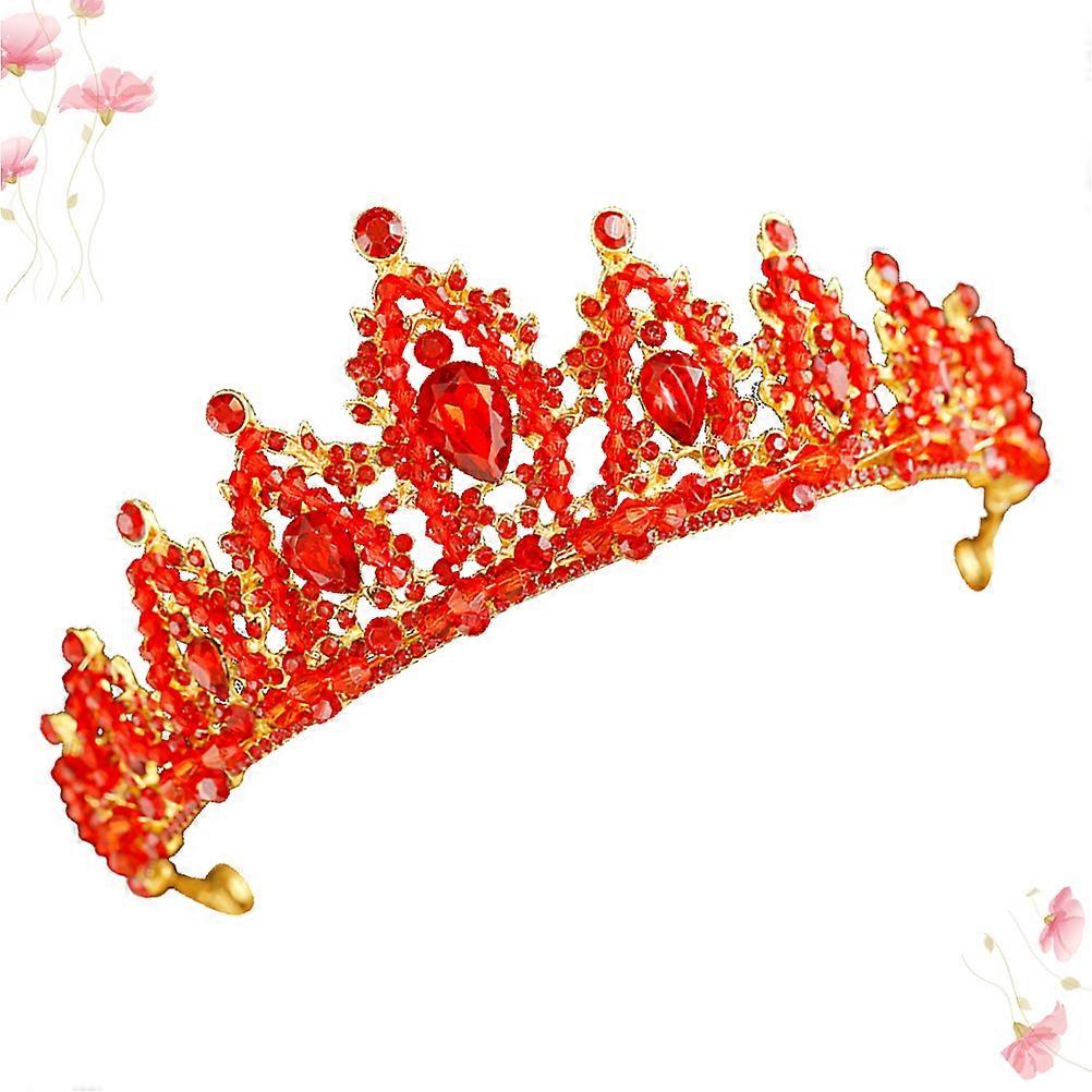 Oral Cleaning Bridal Crown Crystal Tiara with Red Rhinestone Headwear