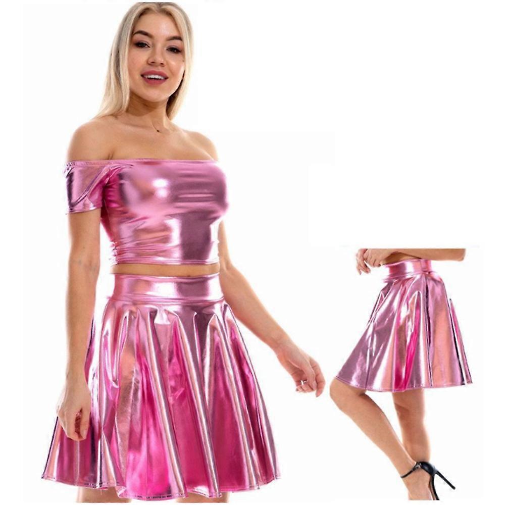 Women's Shiny Flared Pleated Mini Skater Skirt