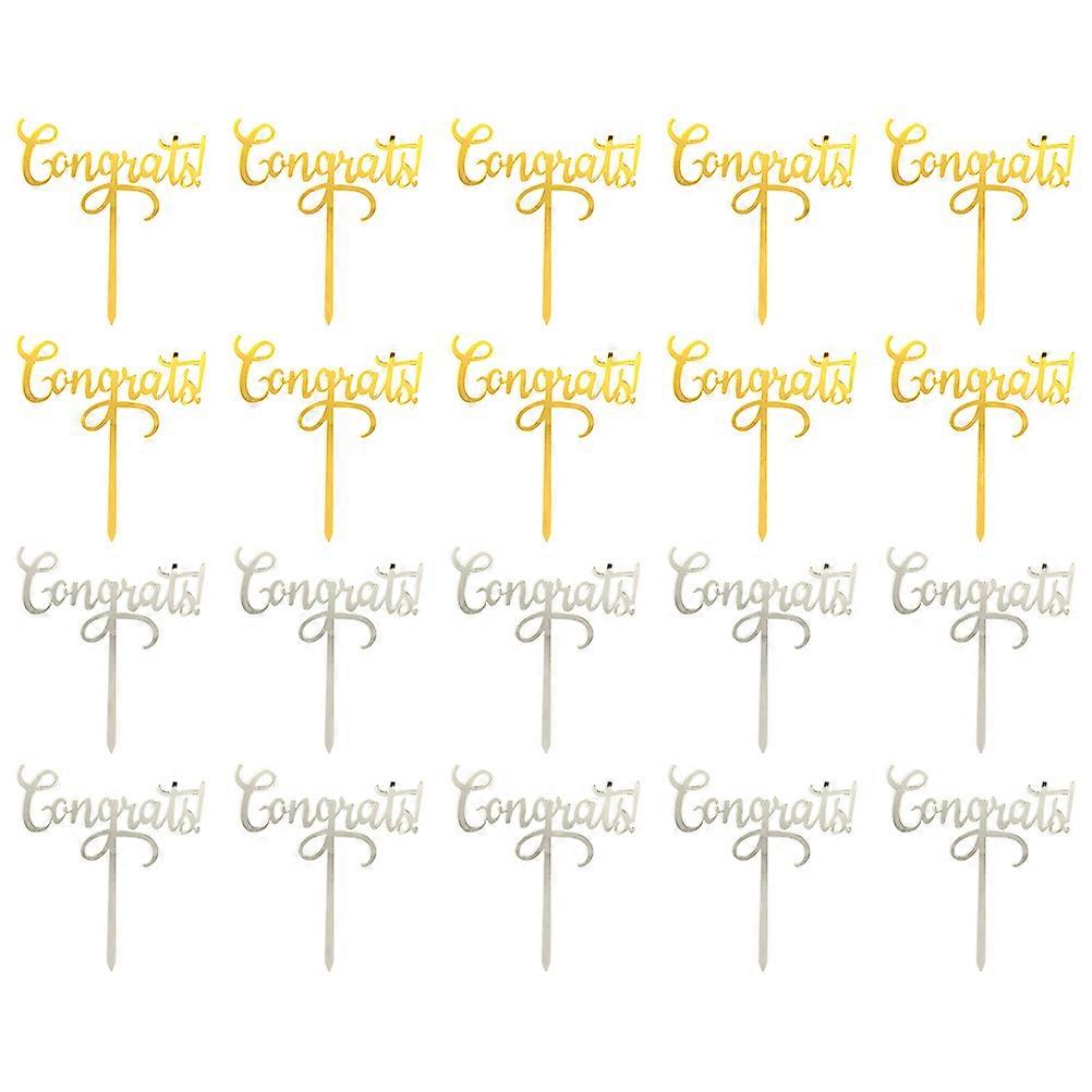 This congrats cake pick is made of material, can be used for a long term. It is mainly used to decorate graduation cakes to make them more beautiful and attractive. It is made with excellent craftsmanship. The decoration have pretty appearance and workmanship. Features - Color: Golden, silver. - Material: Acrylic. - Size: About 11.50X11.00X10.00cm/4.52X4.32X3.93inch. - Sturdy materials and good craftsmanship ensure its durability and practicality. - Special design for graduation party, engagement, anniversary party cake decoration. - This cake pick is suitable for most cakes and perfectly fit your big party. - You can use it decorate your celebration and taking some elegant pictures. - The stylish and attractive design can make your graduation cake more distinctive. Package list: 20 x cake picks