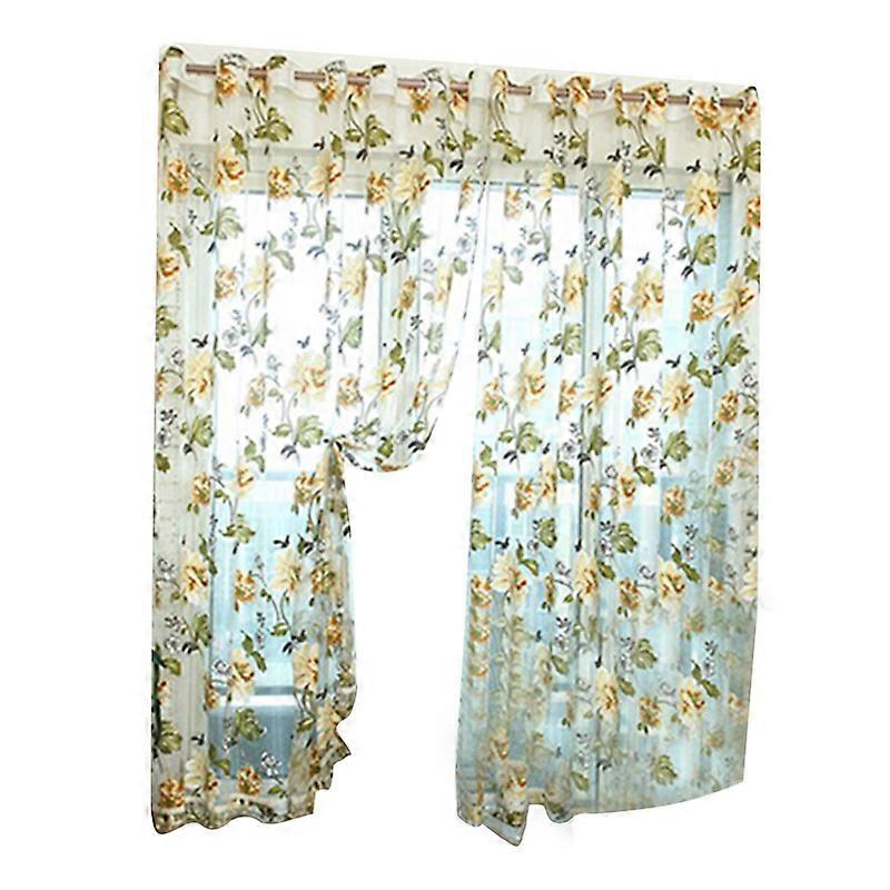 Tulle Sheer Curtain Flower Pattern Valance Drape Polyester Living Room Kitchen Sheer Curtain for Home