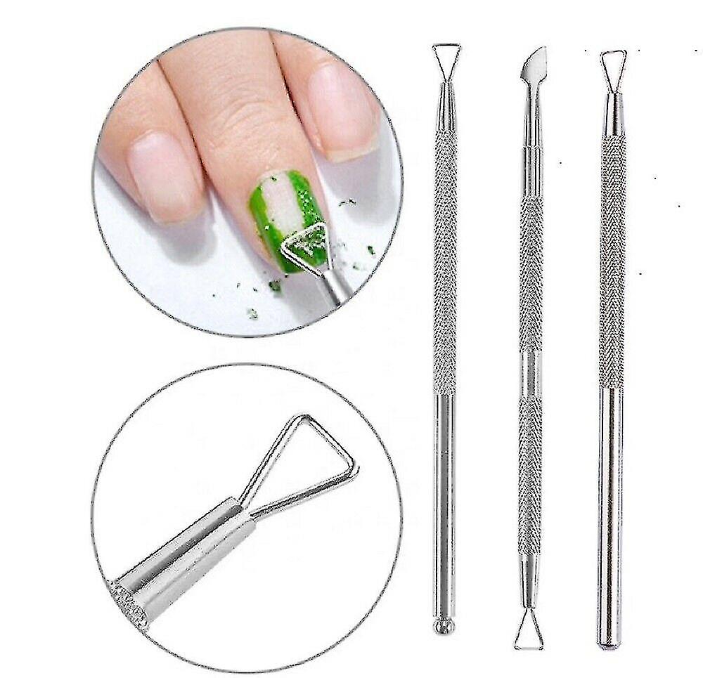 3pcs Cuticle Pusher Remover Nail Cleaner Manicure Pedicure Stainless Steel Tool