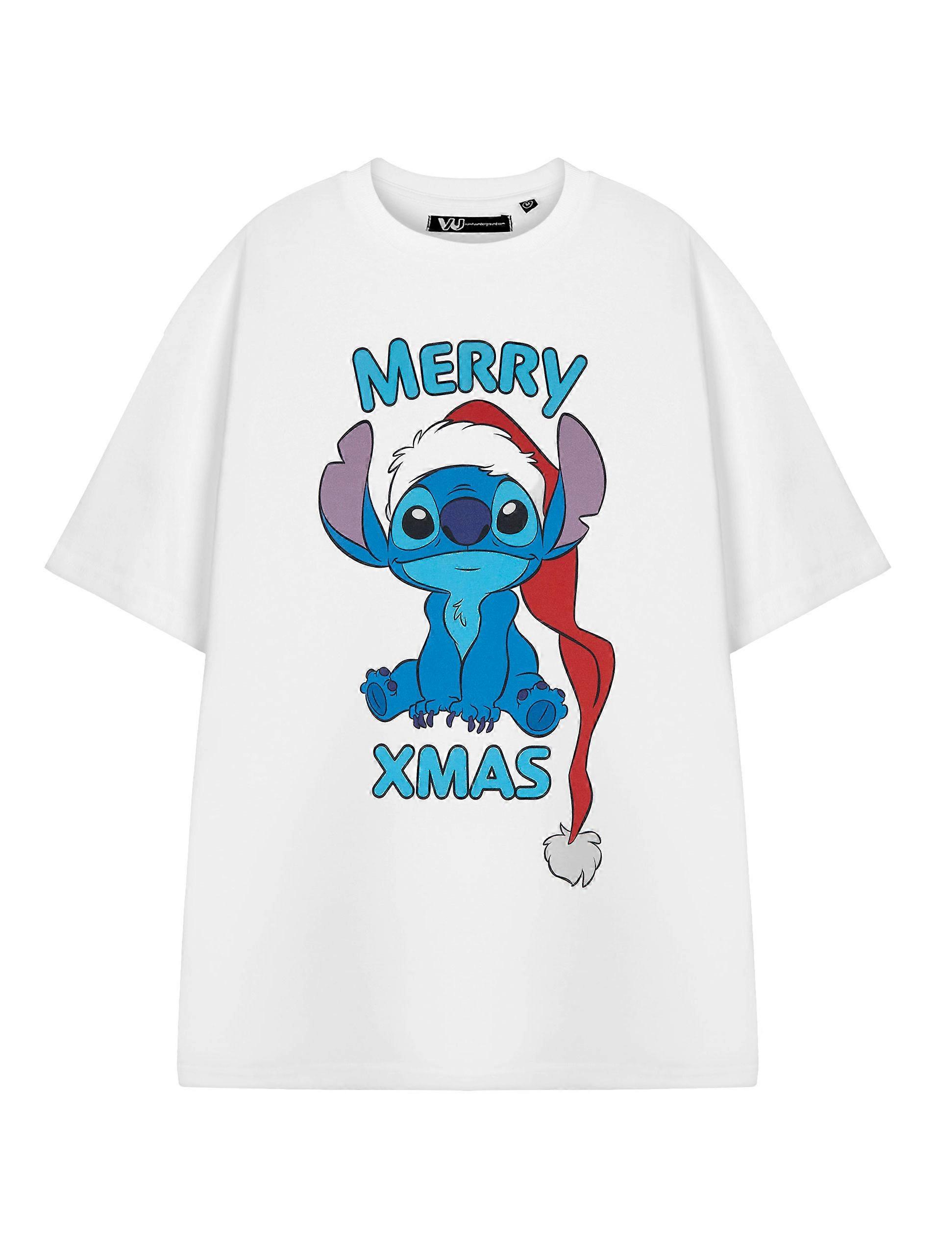 Disney x Lilo & Stitch Womens Short Sleeved T-Shirt White Merry Xmas