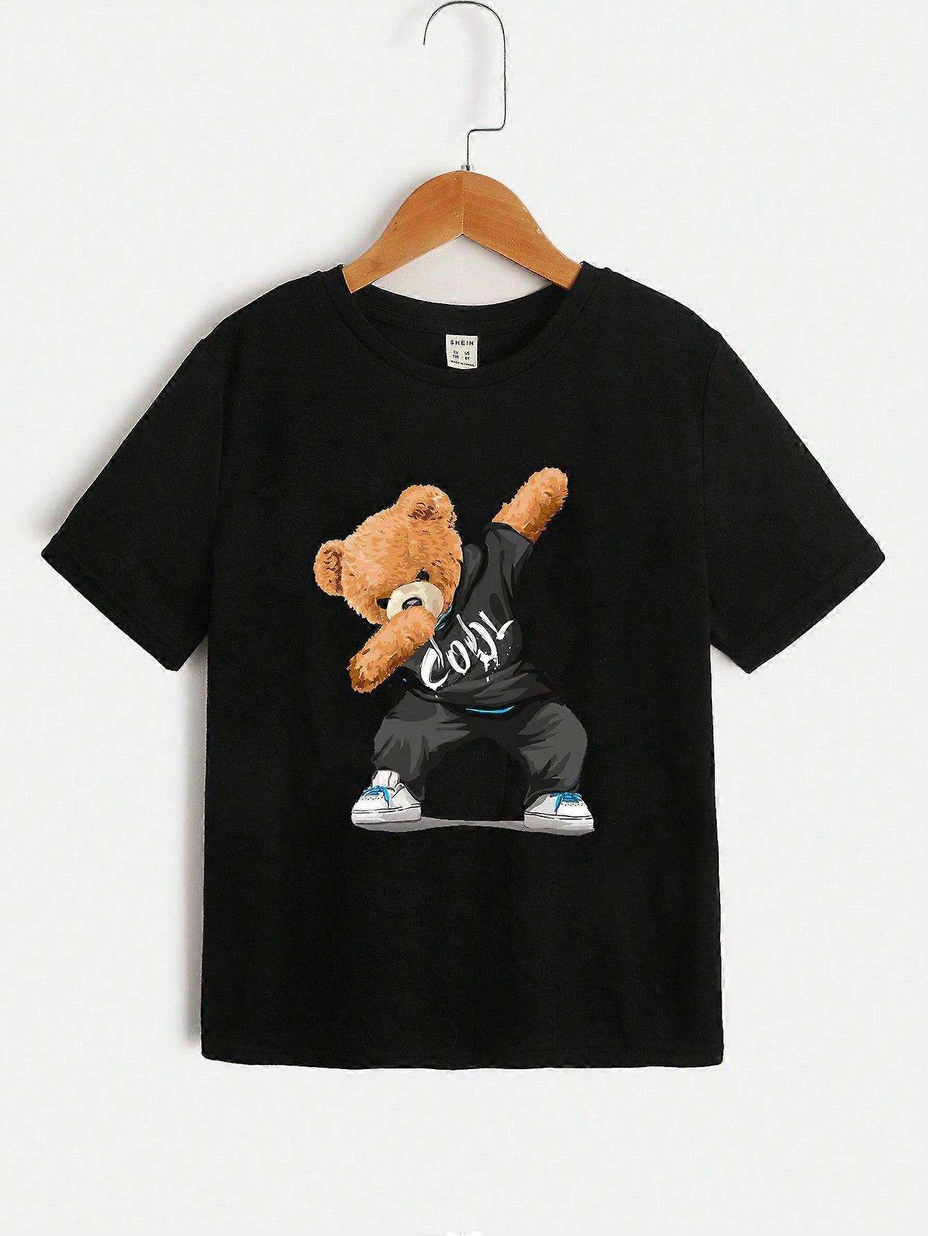 Tween Boy's Bear Print Casual T-shirt - Short Sleeve, Summer, Round Neck