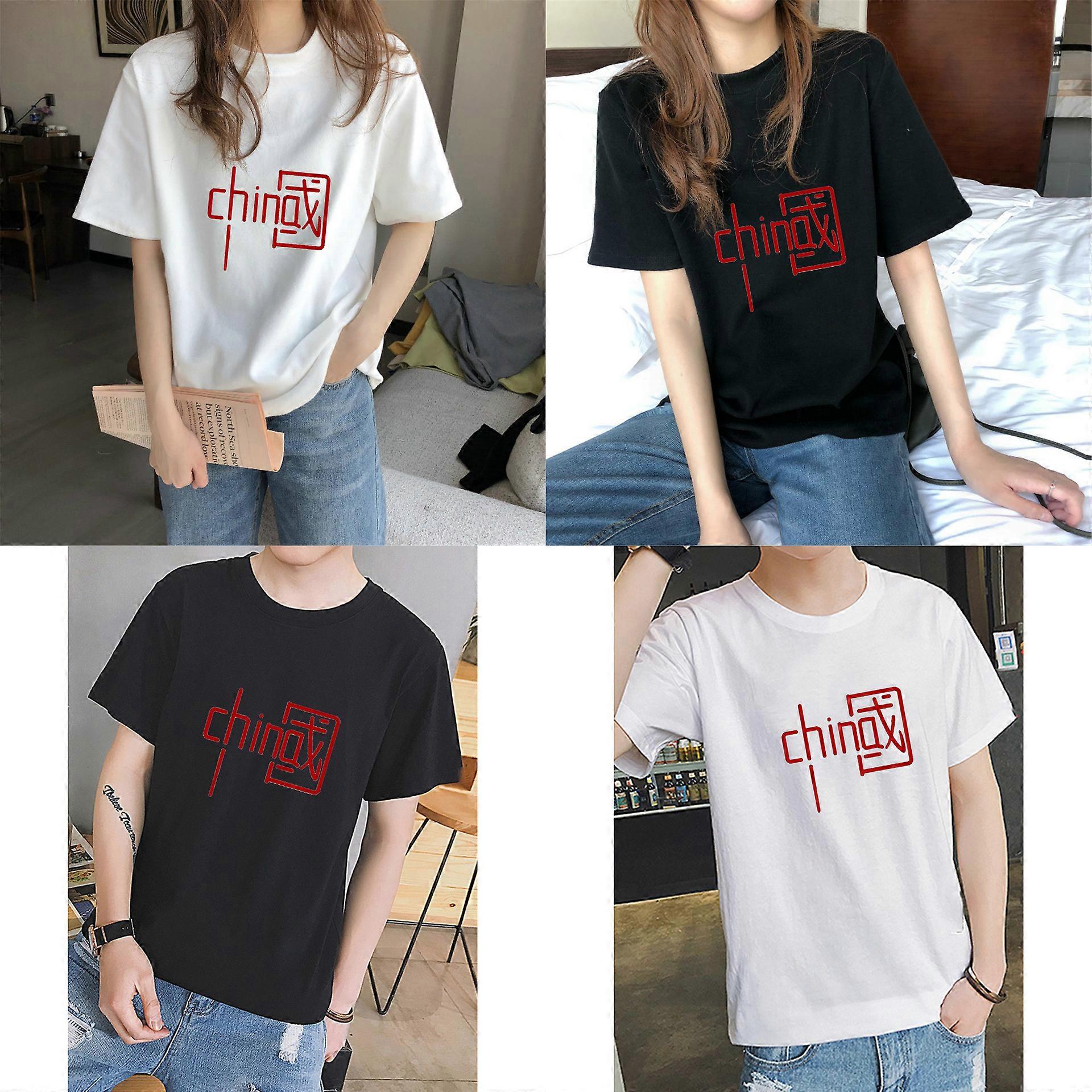 Pure cotton t-shirt tide brand men and women thickened half-sleeved national style ins bottoming shirt loose simple solid color short-sleeved