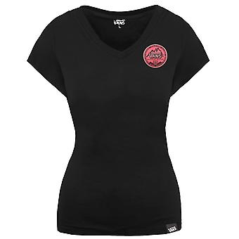 تي شيرت نسائي أسود بأكمام قصيرة برقبة سوداء على شكل V VQWJ6U0