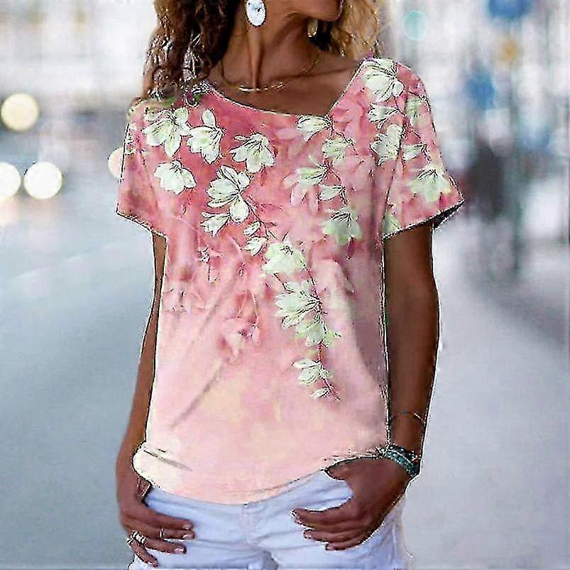 Casual Women's T-shirt in White, Pink, and Blue Featuring Floral Lace Collage, Short Sleeve, Boho Style, Sensual V-neck Design, Suitable for Daily Wea