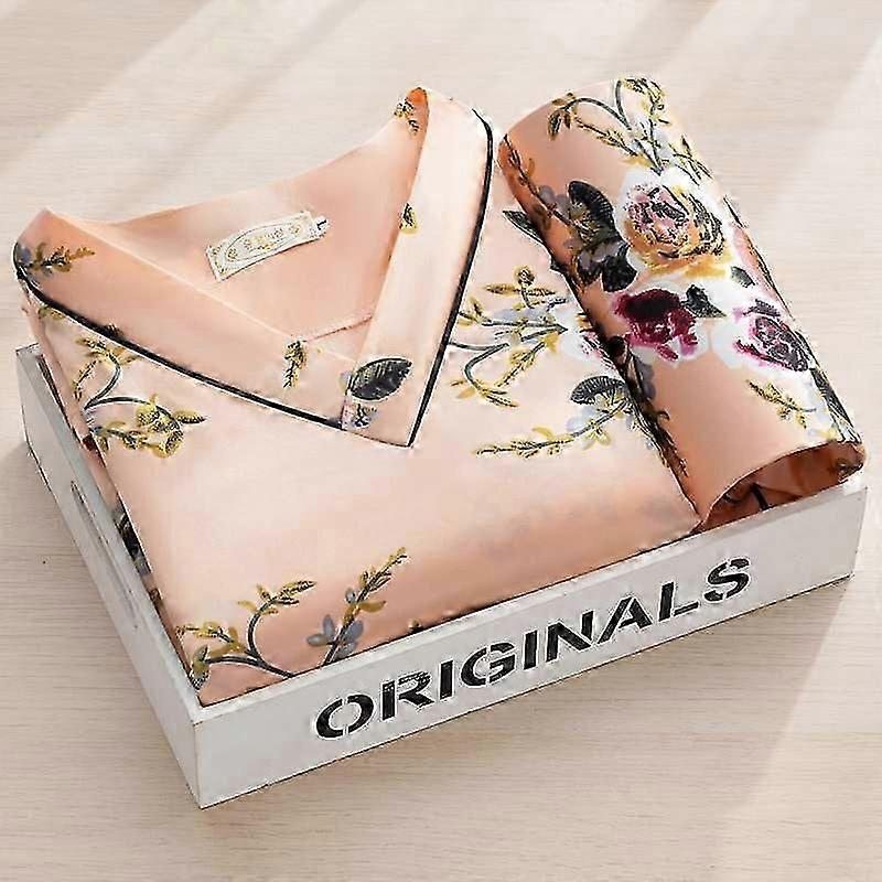 Summer Nightgown Thin Short-sleeved V-neck Ice Silk Pajamas Korean Sweet Two-piece Loungewear Sleepwear