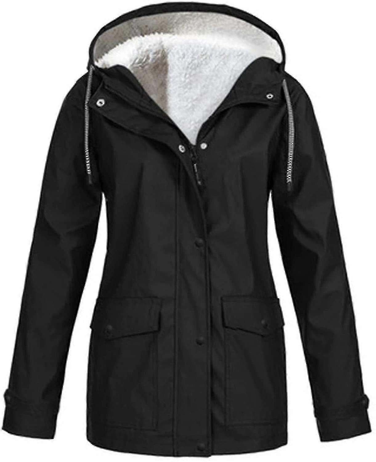 Women"s Lined Fleece Rain Jacket Winter Outdoor Waterproof Hooded Raincoat Ladies Snow Warm Ski Jackets Solid Color-HPZX