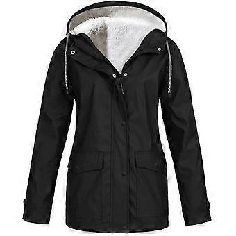 Women"s Lined Fleece Rain Jacket Winter Outdoor Waterproof Hooded Raincoat Ladies Snow Warm Ski Jackets Solid Color-HPZX