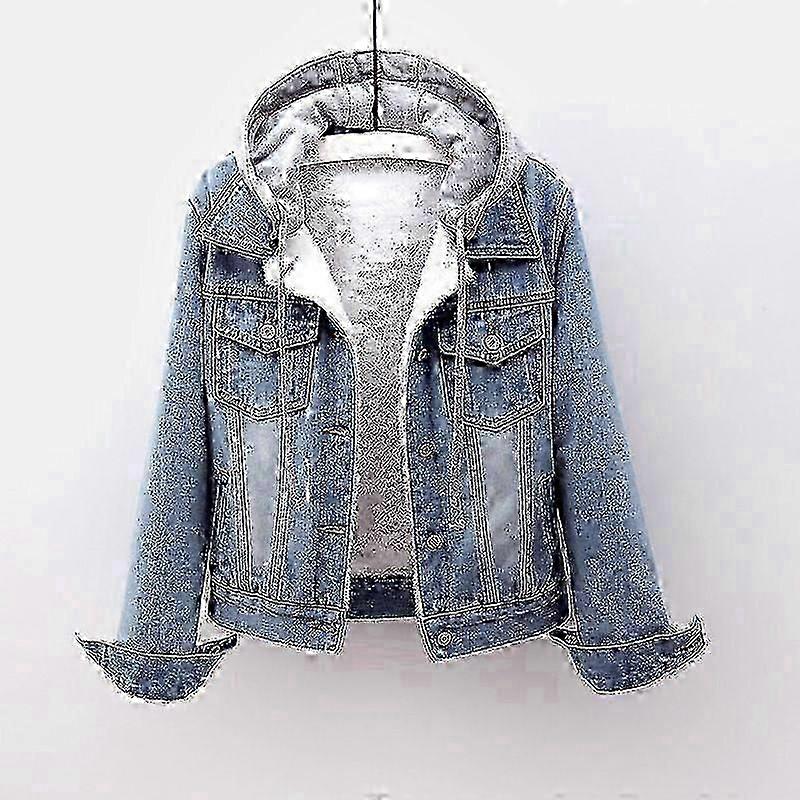 Women Denim Jeans Coat Jackets Hooded Autumn Winter Thick Fleece Fur Plush Lining Short Tops Vintage Long Sleeve