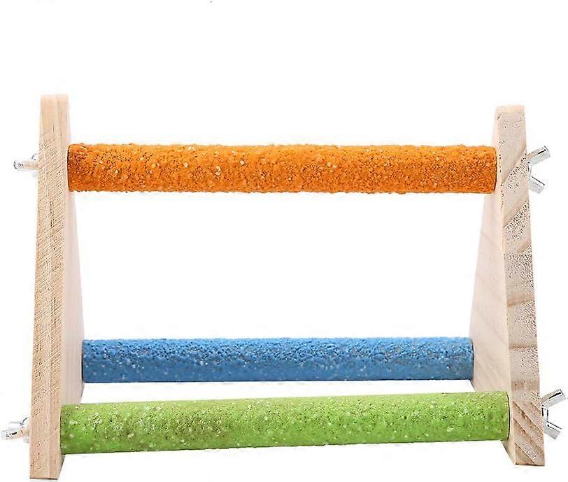Wooden Perch for Bird, Colorful Bird Cage Standing Toy Grinding Claw Perches toy for Parrots Parakeets Macaws Pet Birds[Triangle]