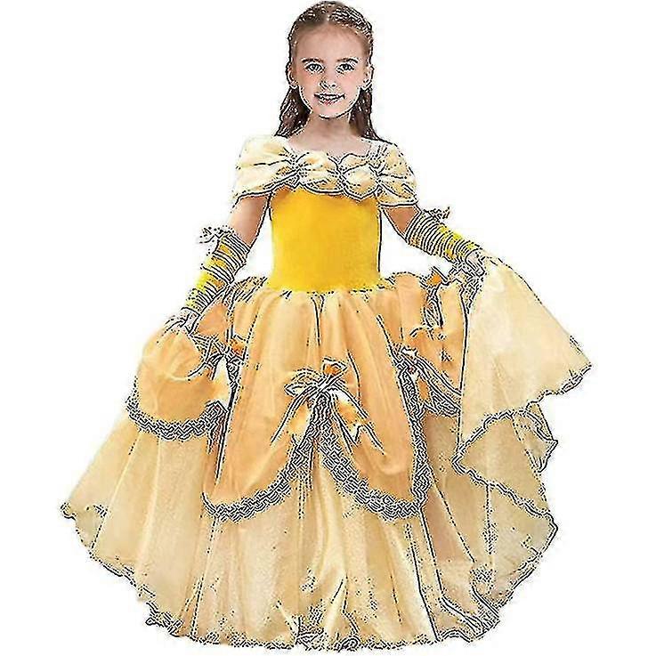 New Trend Girls Belle Princess Fancy Dress Beauty And Beast Outfits Halloween Christmas Wedding Birthday Gown Mimenor