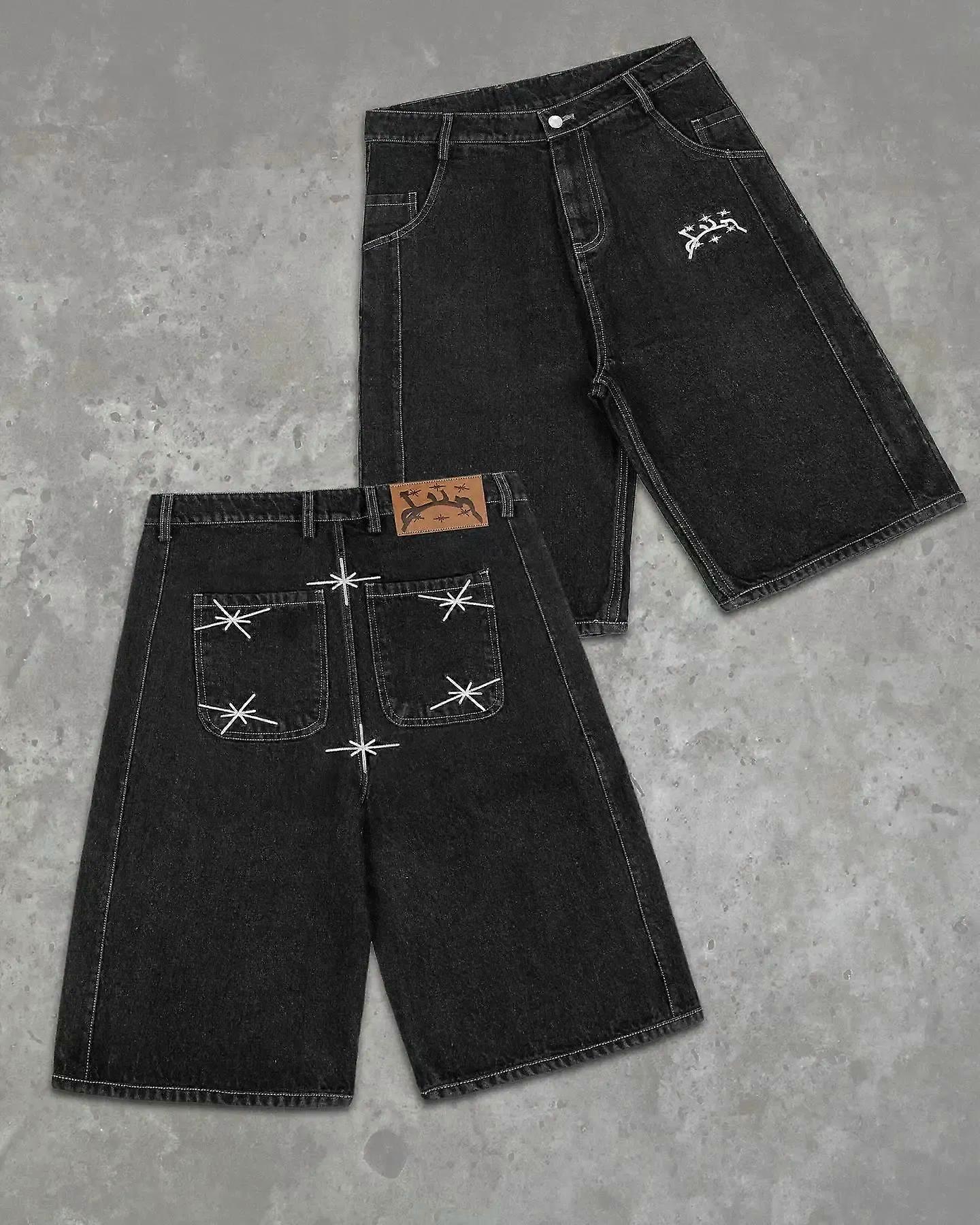 New Divin Street Geometry Graphic Embroidery Baggy Denim Shorts Y2k Retro Hip Hop Trendy Gym Basketball Shorts Men Women Jorts