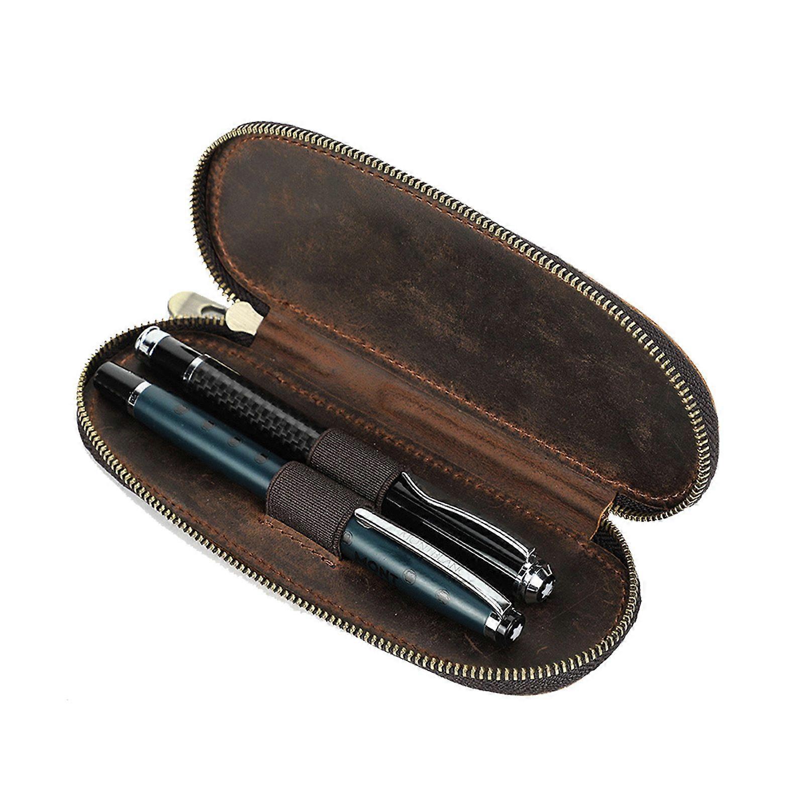 NEW Luxury Leather 2 Slots Fountain Pen Case Zipper Pencil Storage Box Pouch New