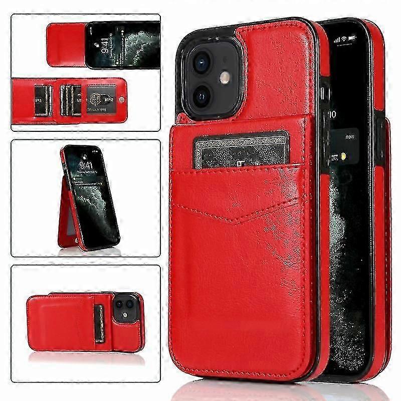 New For Iphone 12 Mini Solid Color Pc + Tpu Protective Case With Holder & Card Slots (red)