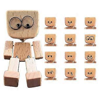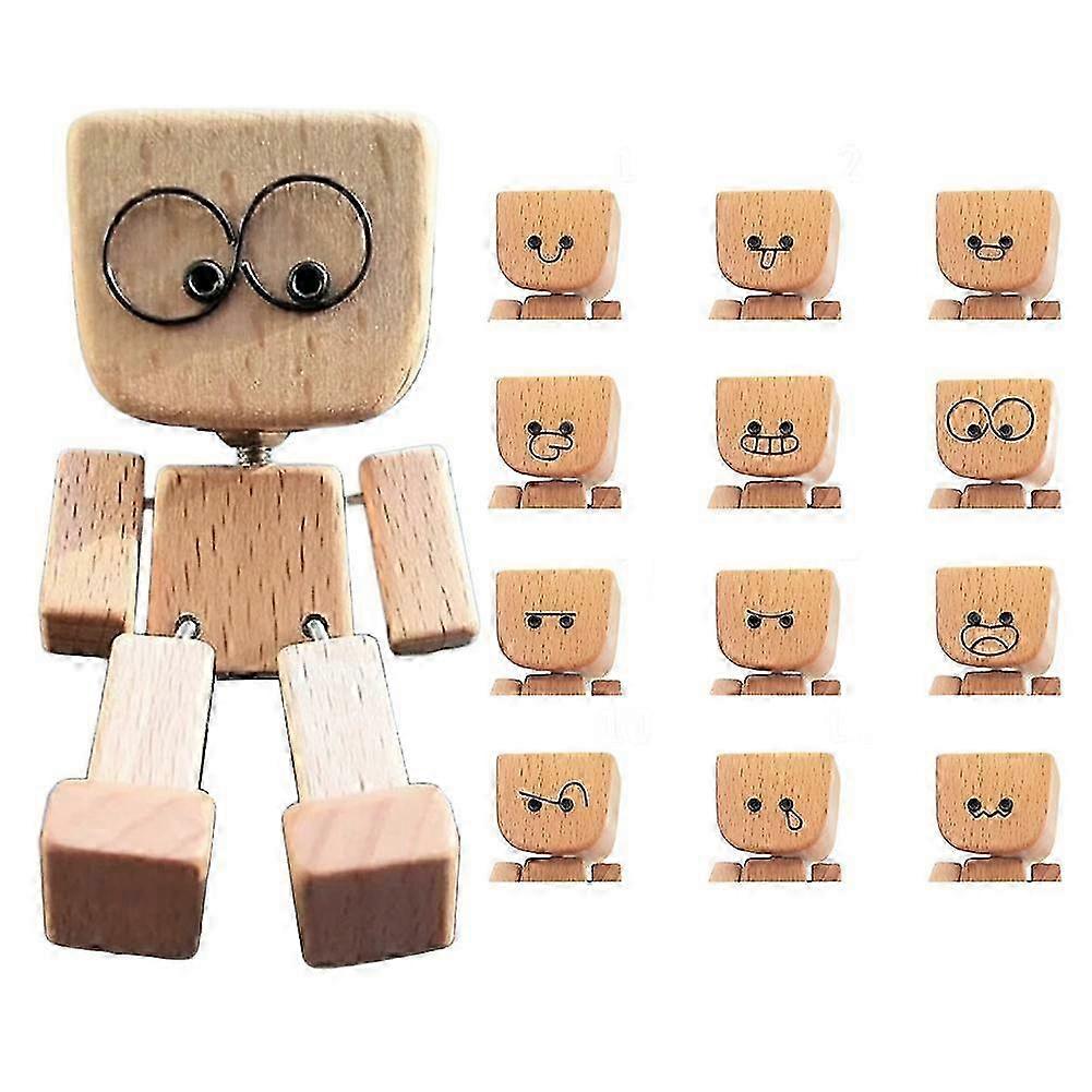 New Shaking Wooden Man Figure Decoration Desktop&Car with 12Magnetic Expressions 2025